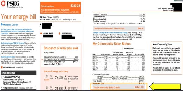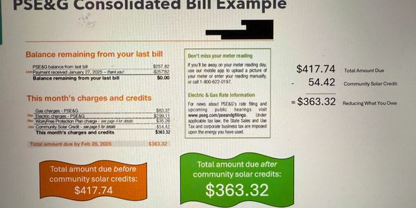New Jersey now offers consolidated billing for community solar. Your solar credits will be reflected directly on your electric utility bill, which you will pay as you normally would.